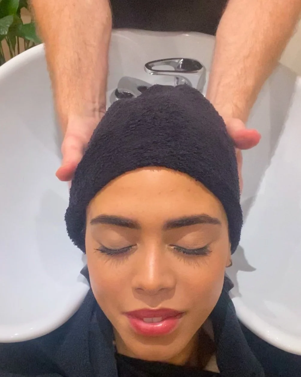 A relaxing hair spa moment.